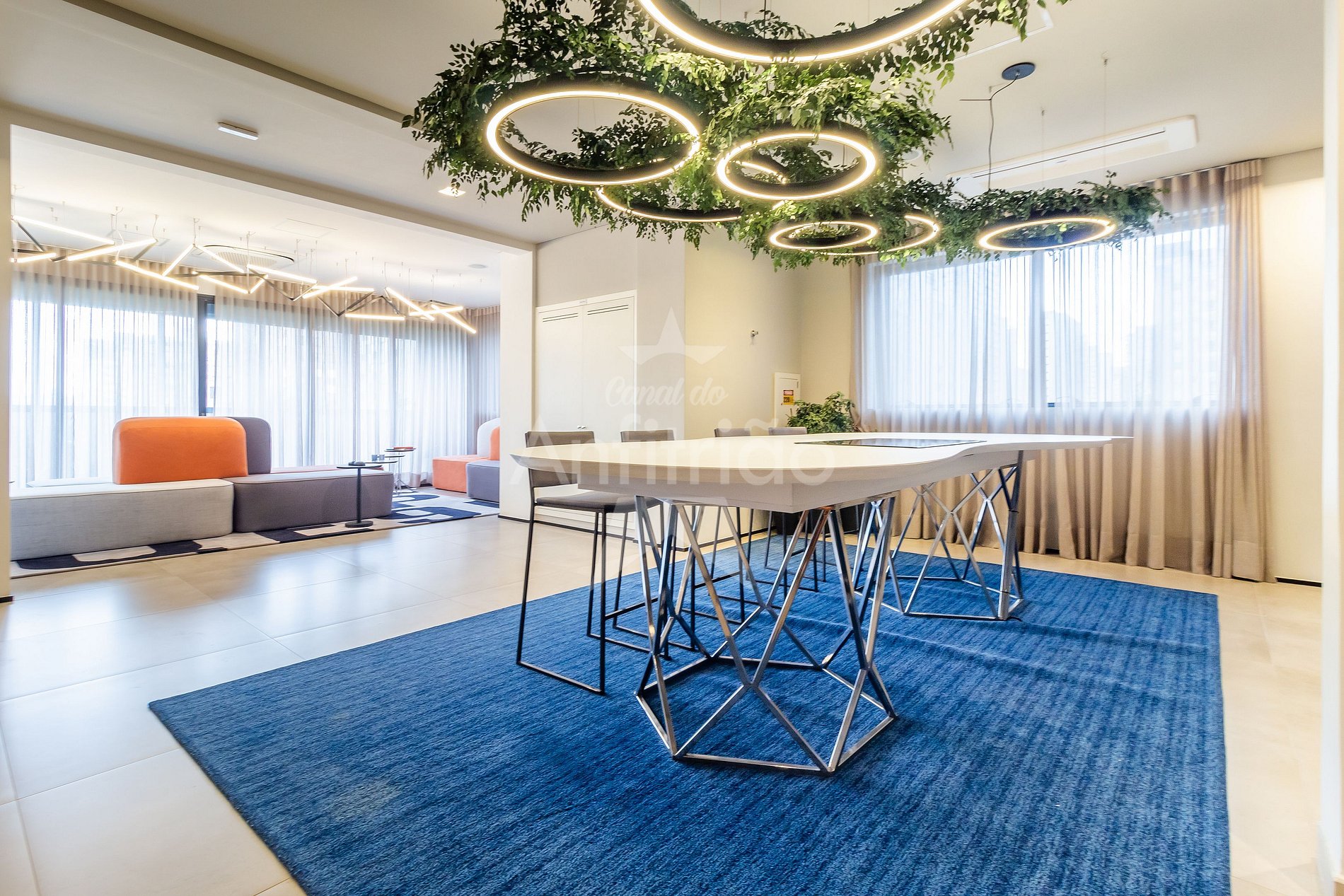 - Área de relaxamento em puffs suspensos