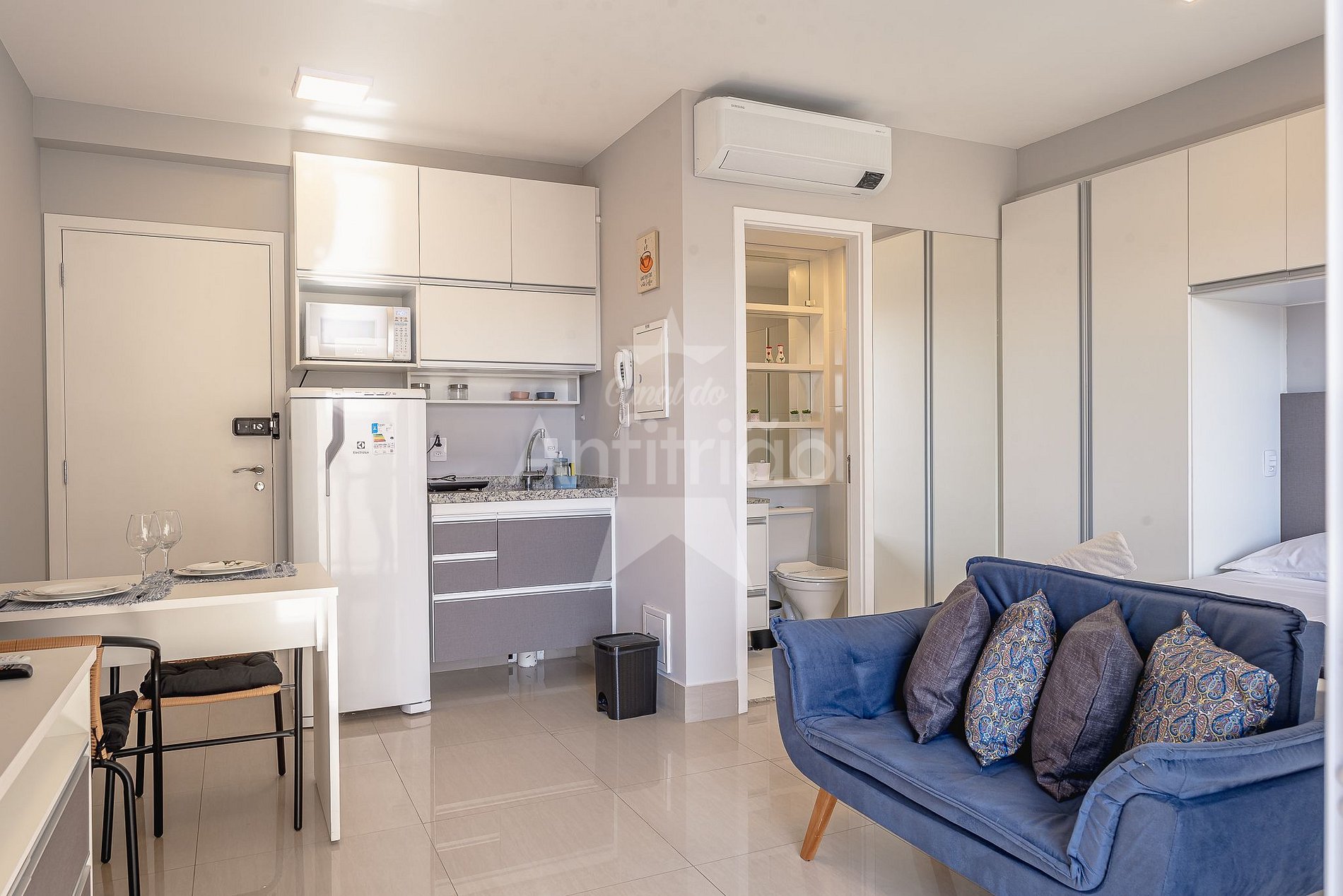 Studio bonitinho com garagem e ar condicionado